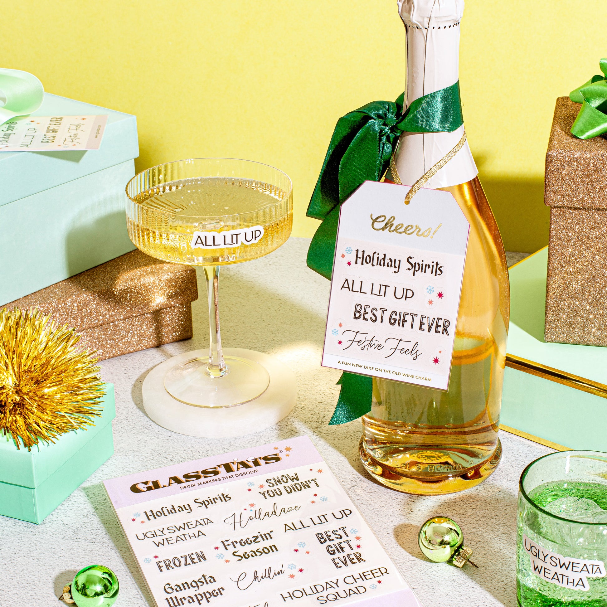 GlassTats gift tags are the high end finishing touch to any holiday or hostess gift. Perfect when gifting a bottle of wine, or attach the tag to a wrapped gift.