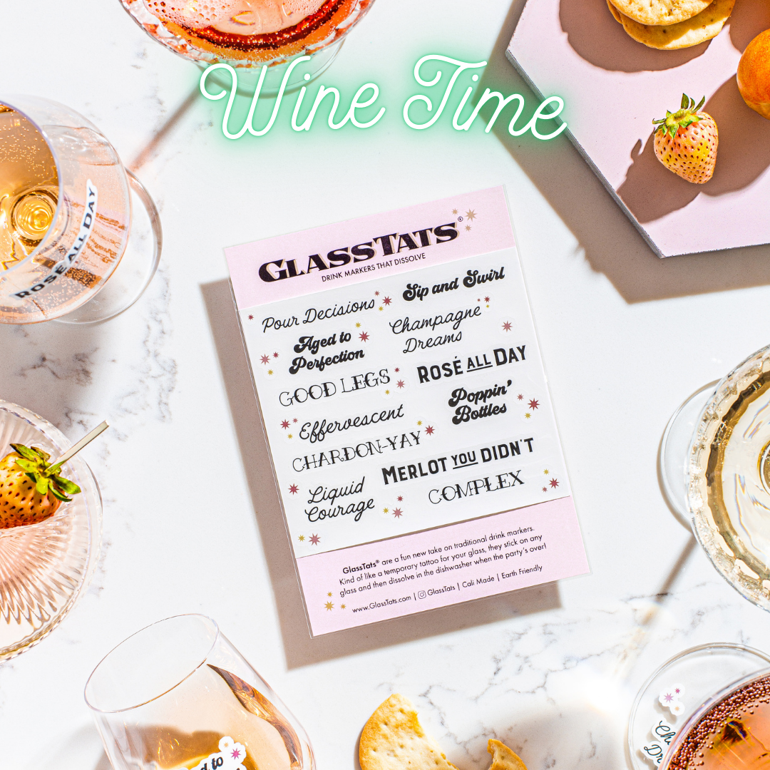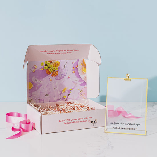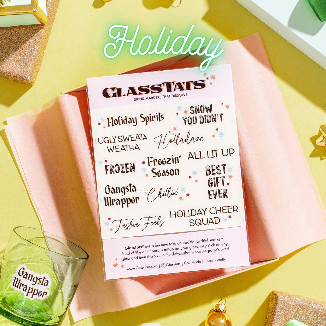 With this chic gift box, your friends can sip, celebrate, and sparkle—all without ever losing track of their glass. Whether they prefer stemmed or stemless wine glasses, GlassTats help keep every drink stylishly marked. The standout acrylic stand turns GlassTats into the star of the bar, ensuring they’re always ready for a festive gathering.