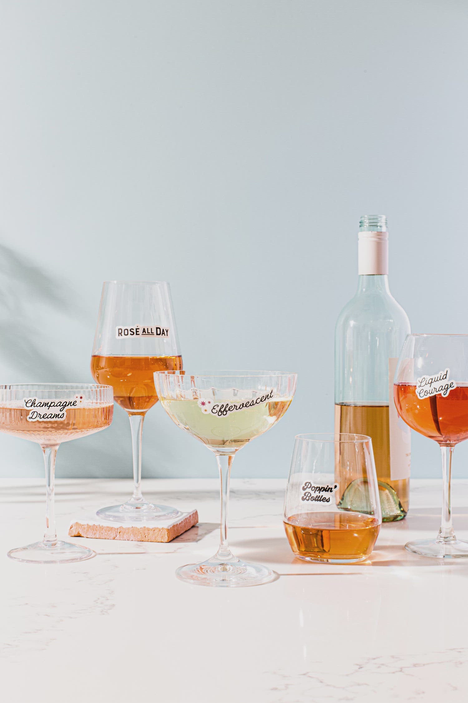 The full set of Wine Time GlassTats includes 12 drink markers: